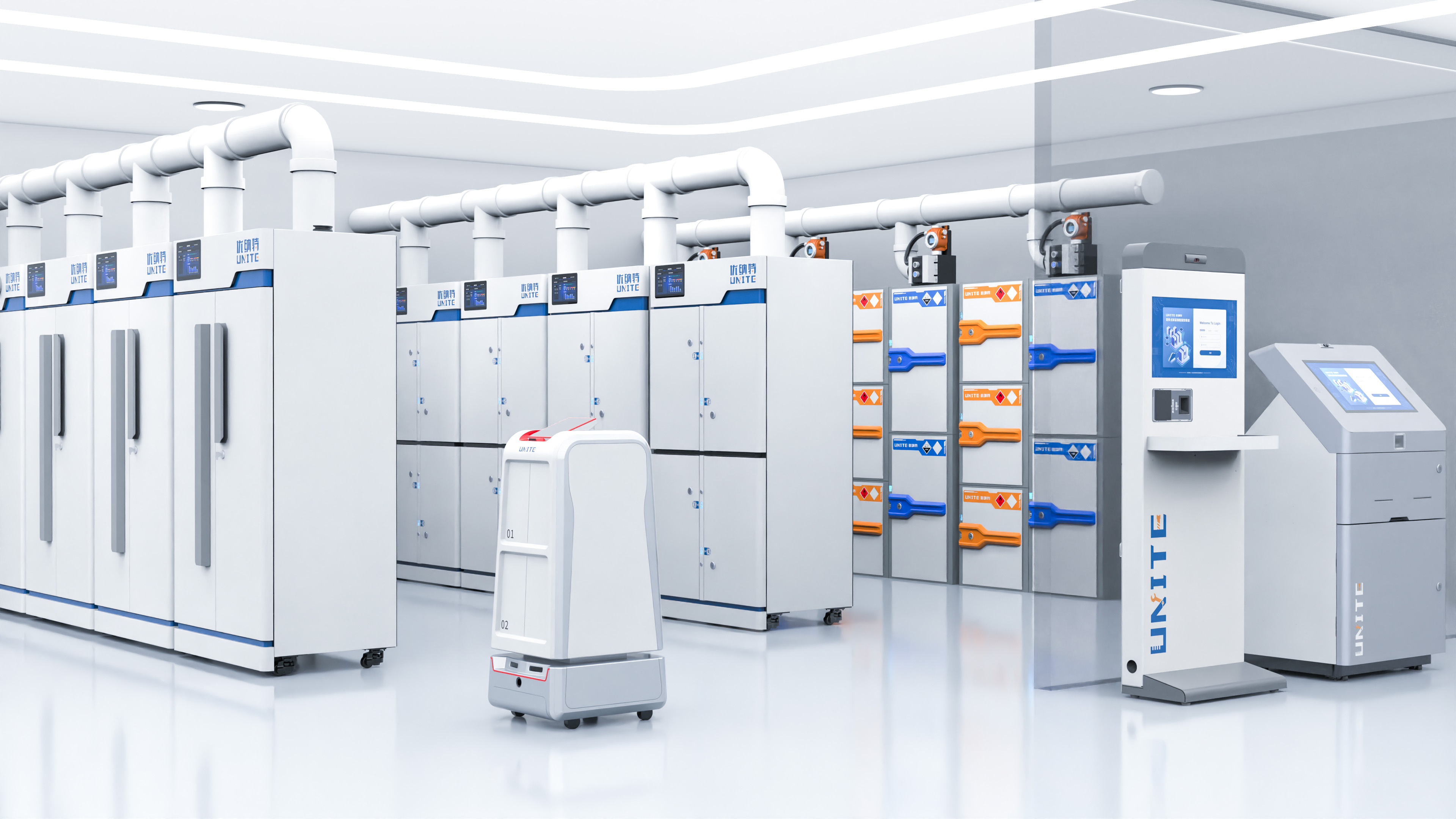 浙江優納特自主創新研發矩陣式物聯儲存艙,涵蓋試劑?;贰藴势?標準菌、生物樣本、數字孿生數據、自動化無人實驗室、智慧實驗室安全、環境監測、儀器設備等八大平臺。主營硬件包括:智能試劑安全柜,智能危化品柜,智能試劑柜,危化品安全柜,防爆安全柜,智能易制毒安全柜,智能防火安全柜,智能防爆安全柜,試劑冷藏柜,無人實驗室自動化設備,自動化機器人,自動化轉運機器人,機器臂,智慧無人實驗室,全自動生物樣本庫,標準品常溫柜,標準品冷藏柜,標準品雙控溫柜,智慧實驗室管理系統,實驗室信息管理系統,實驗室物資管理系統,實驗室安全教育系統,無人實驗室智慧化管理。通過軟硬件結合,為實驗室物資提供物理安全防護的同時掌握物資存取、定位、統計等全生命周期動態。